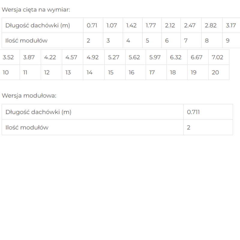 - Długość jednego modułu 350 mm