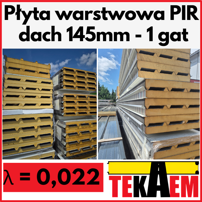 Płyty warstwowe jak i termoizolacyjne AL z rdzeniem PIR to Lambda λ = 0,022 co oznacza, że są prawie 2x lepsze niż styropian czy wełna.